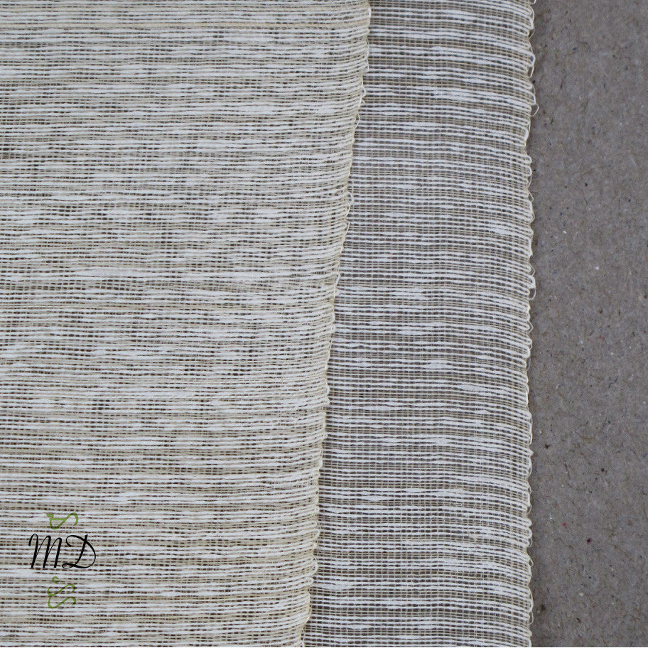 Pineapple-Silk-Abaca is an innovation of the well-known traditional textile which is Pineapple Silk. This delicately handwoven textile is made by the most-skilled weavers of Aklan. Like Pineapple Silk, it is lightweight, translucent and slightly crisp to the touch like organza. The noticeable feature of this fabric comes from its striped texture created by alternating pineapple yarns (Ananas Bracteatus) with hand-twined Abaca (Manila Hemp or Musa Textilis). Pineapple-Silk-Abaca is slightly smoother to the skin compared to Pineapple Silk.